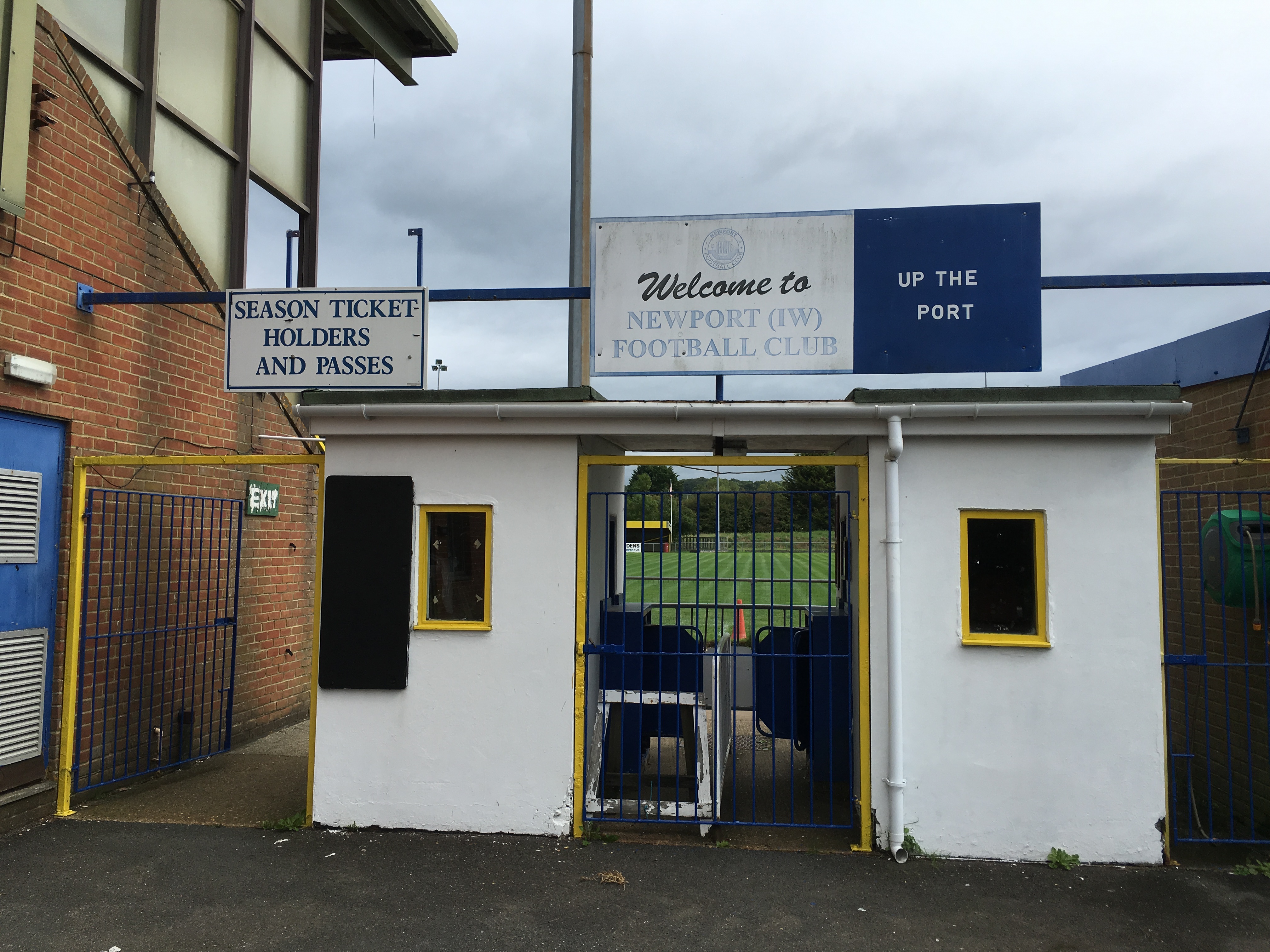 The stadium is a typical non-league ground, right next to a busy road that perpetually had classic cars driving up and down it. In many ways, the Isle of Wight is akin to Cuba with some amazingly well looked vintage vehicles all over the place. St George’s park has a three small terraced areas behind each goal and to one side of the pitch, and offices and main stand on the other side, with a car park and solitary turnstile. A quick peek through the window revealed something quite worrying.